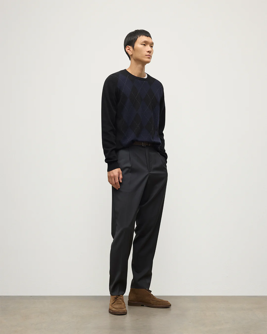 The Argyll Cashmere Jumper in Black is a refined wardrobe staple with a classic crew neckline, ideal for styling throughout the seasons. Knitted in our Hawick Mill from 2-ply yarns of the finest 100% cashmere, it features a traditional Argyle pattern to the body, and provides a lightweight wear alongside softness and warmth.