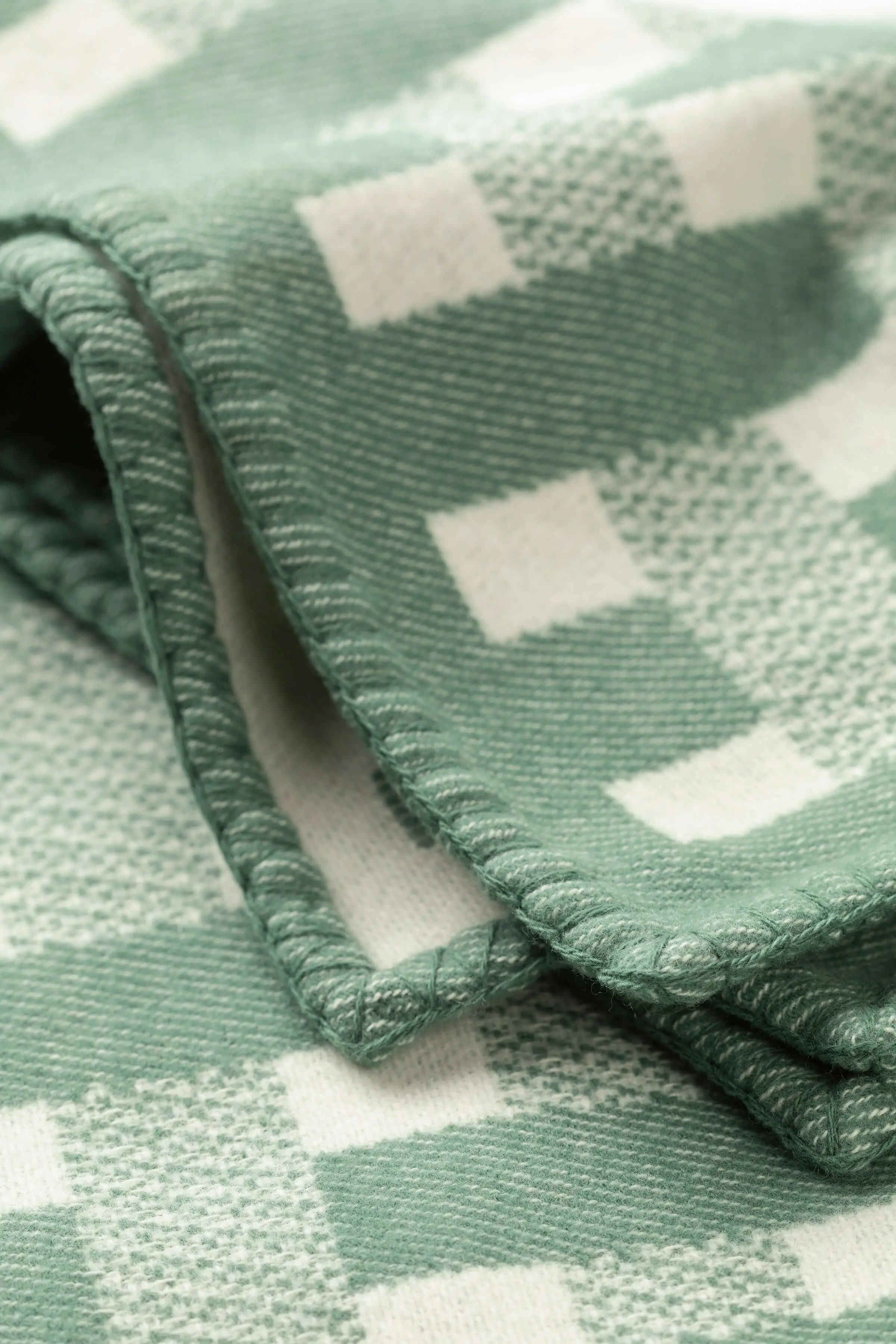 Blanket Stitched Basketweave Green Throw