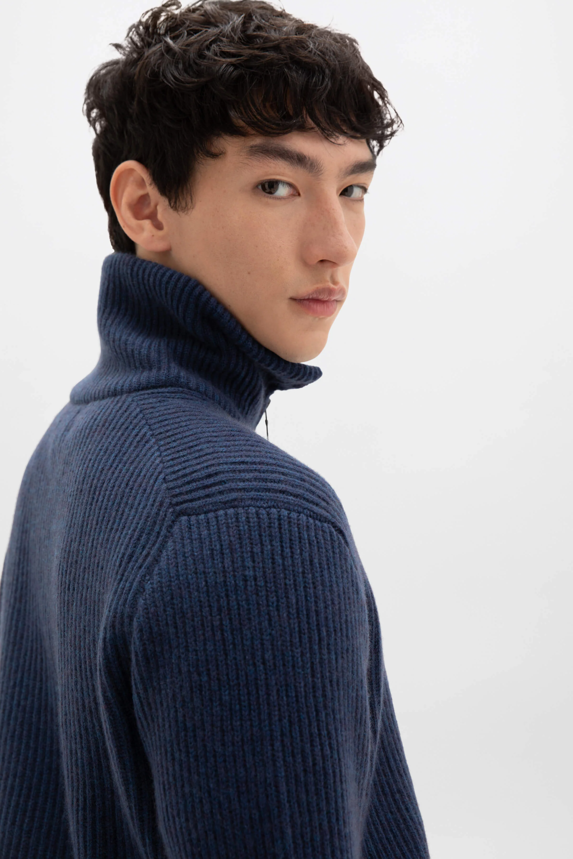 This half zip Turtle Neck Jumper in full cardigan stitch has a soft, tactile soft handle. The deep neck trim is designed to be worn doubled over.
