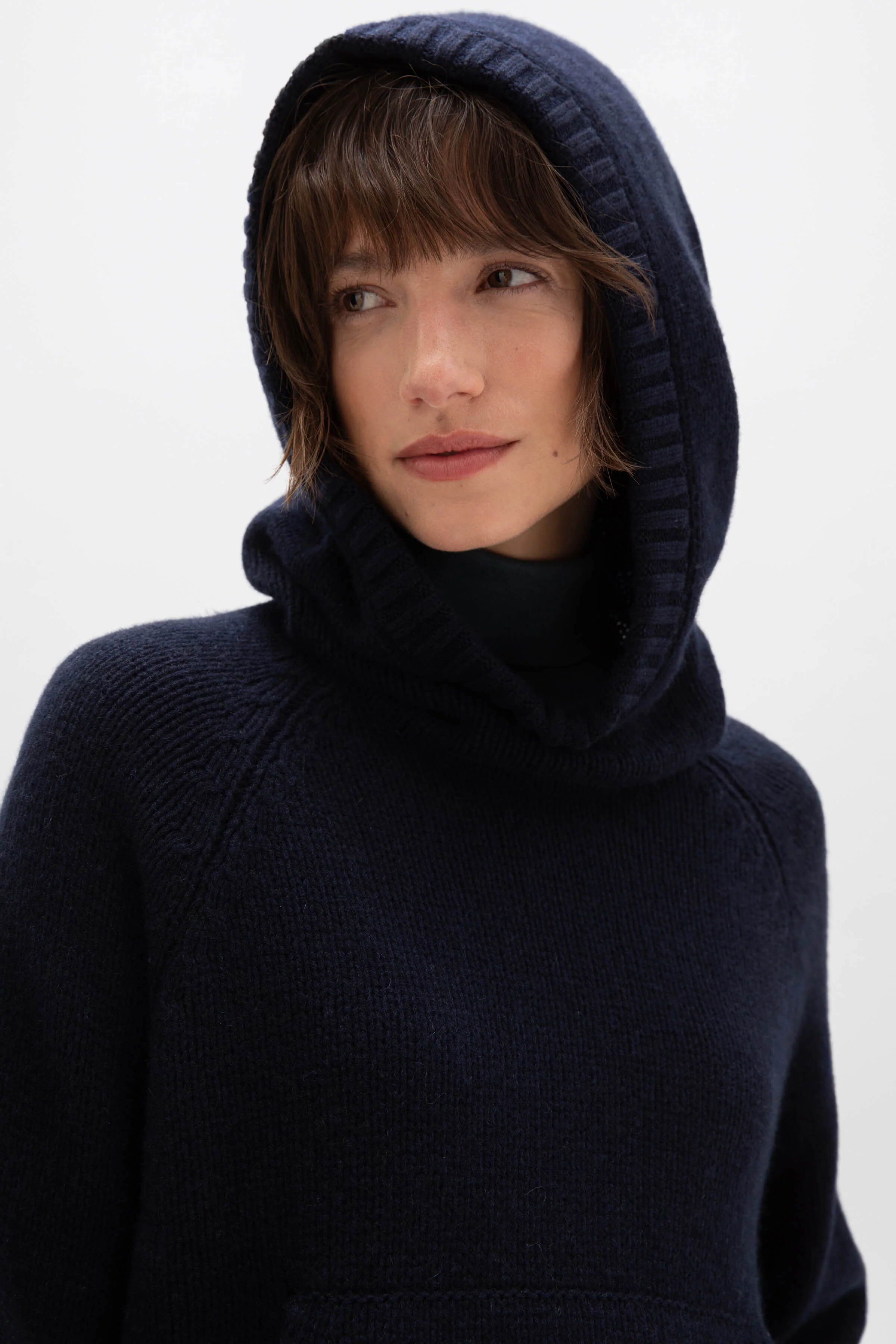 Cocoon yourself in our women's cashmere hoodie. This oversized, relaxed hoody has a kangaroo pocket, and the shaped funnel hood is finished with rib detailing.