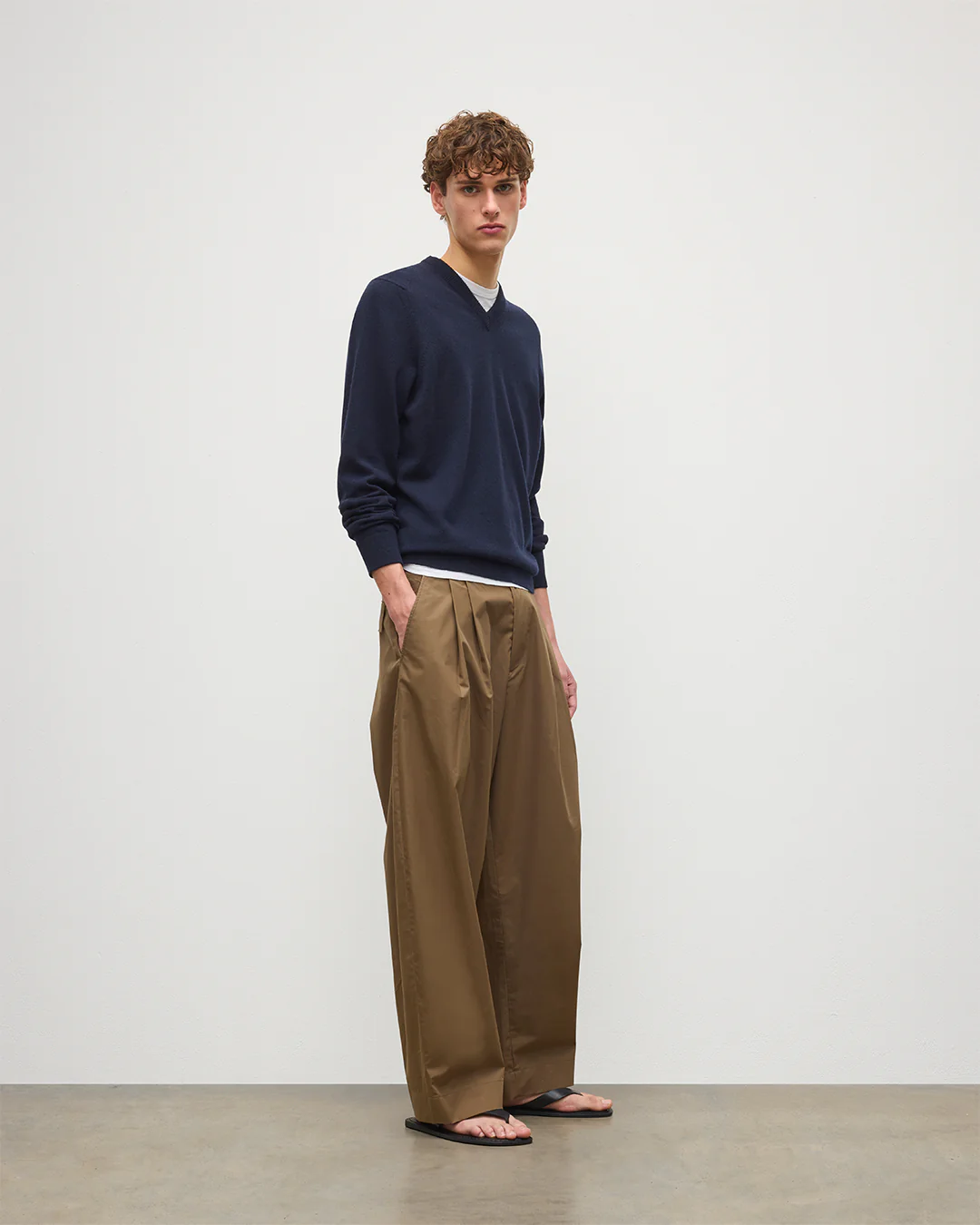 A staple of men's knitwear and one of our year-round classics, the V Neck is knitted in our Hawick Mill from a lightweight 2-ply yarn of 100% cashmere, dyed in an easy-to-style Dark Navy.