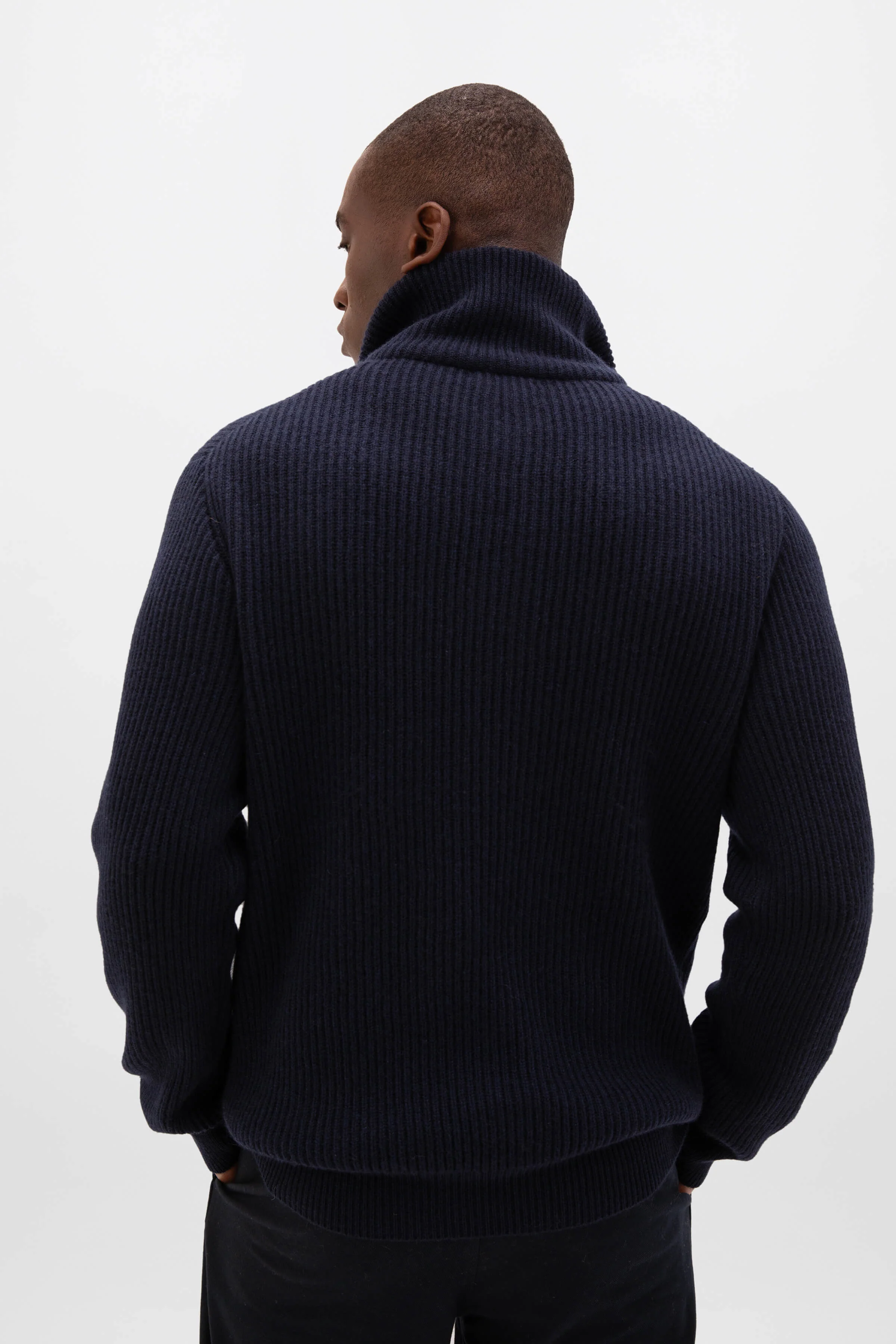 Ribbed Cashmere Dark Navy Zip Neck Jumper