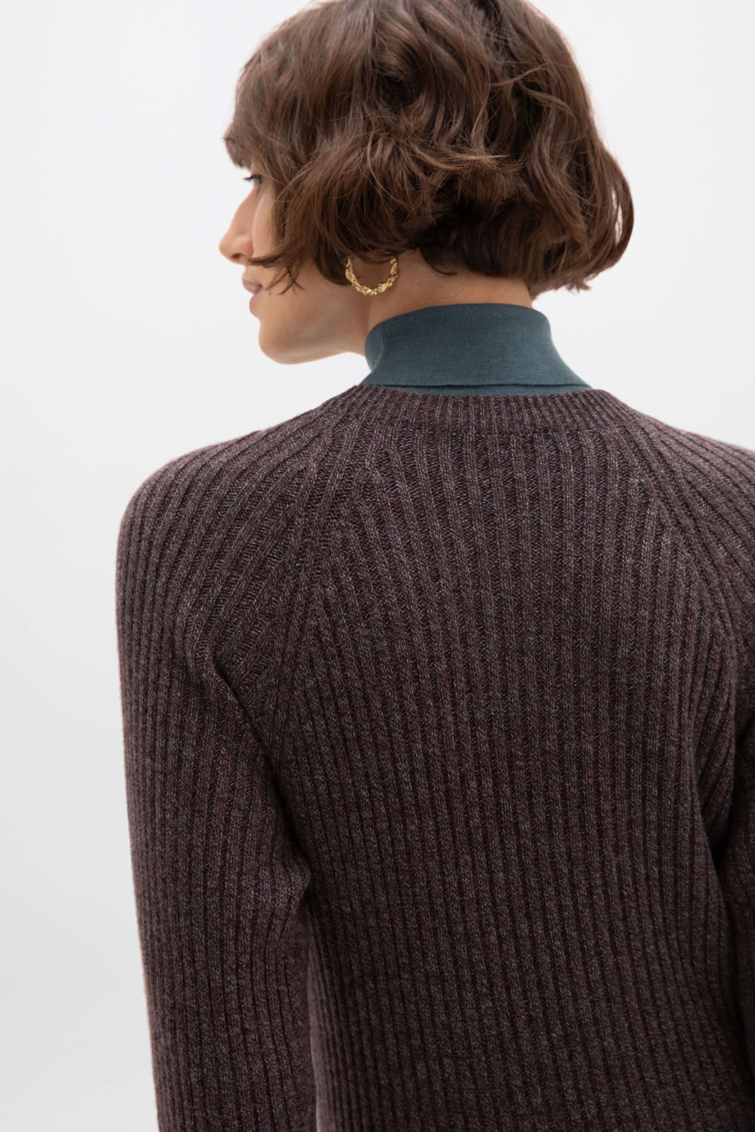 An indulgent, fine-ribbed dress based on one of our most popular men's sweater designs. Dolman sleeves feel relaxed and loose, while the long length is perfectly on-trend. Versatile, flattering and seamless with a fit and flare silhouette. Knitted in a rich russet marl cashmere yarn.