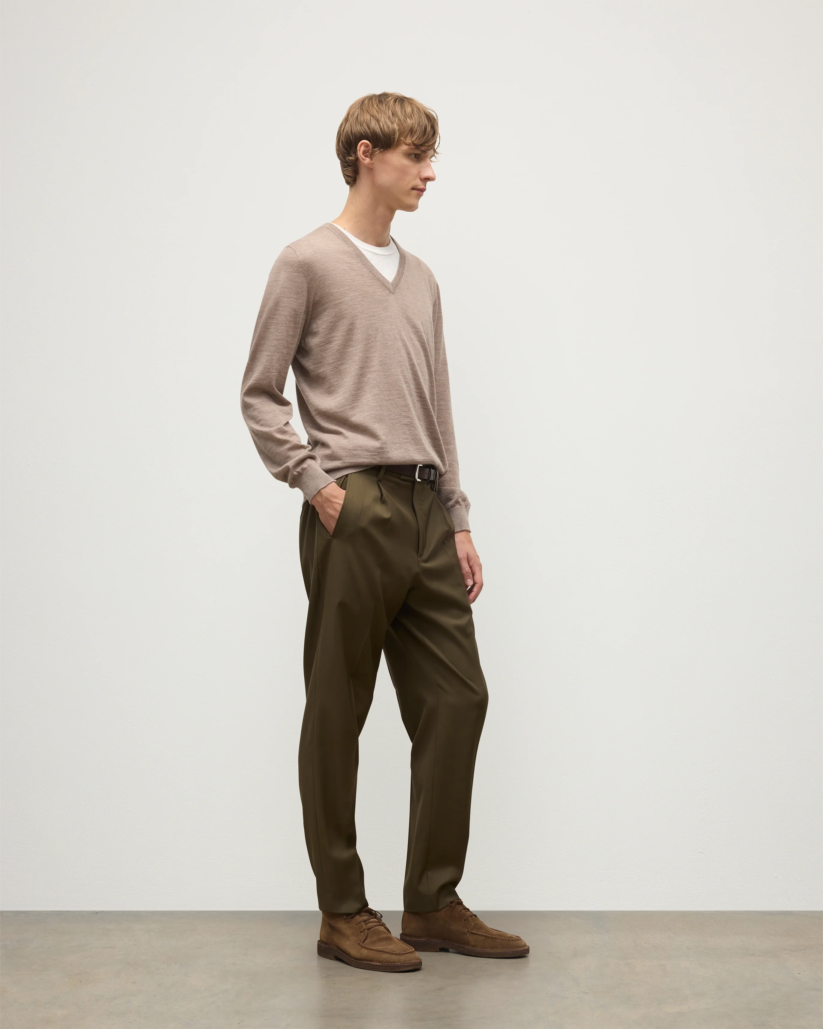Fin Light Brown V Neck Superfine Cashmere Jumper