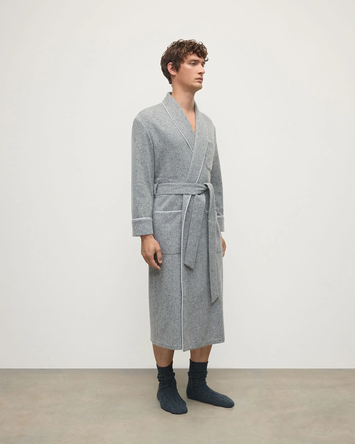 This unlined dressing gown is crafted from our 100% Donegal cashmere, luxuriously soft and warm, with contrasting flecks sprinkled throughout the yarn for surface interest and a nod to knitwear heritage.