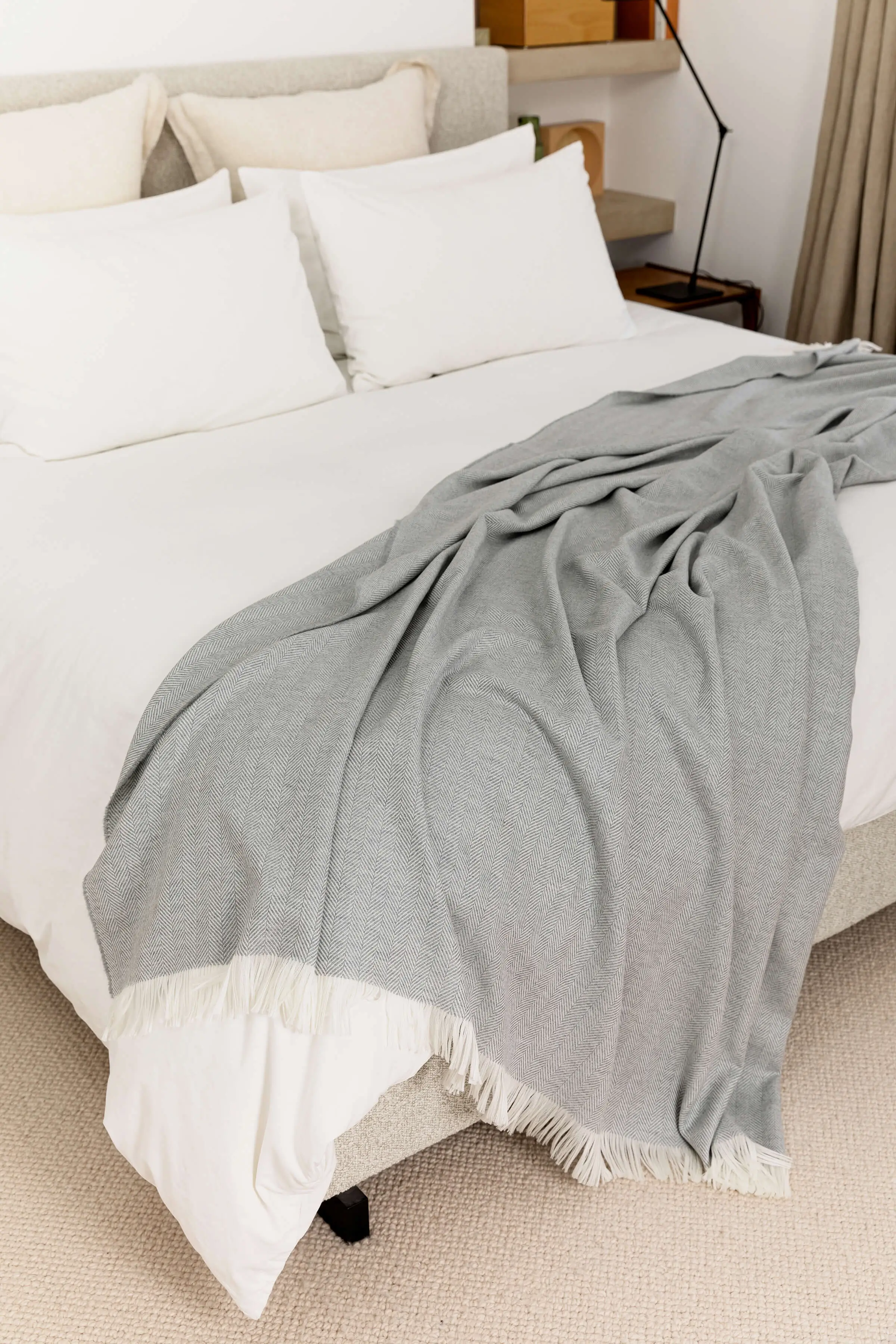 Herringbone Merino Bed Throw in Mist—