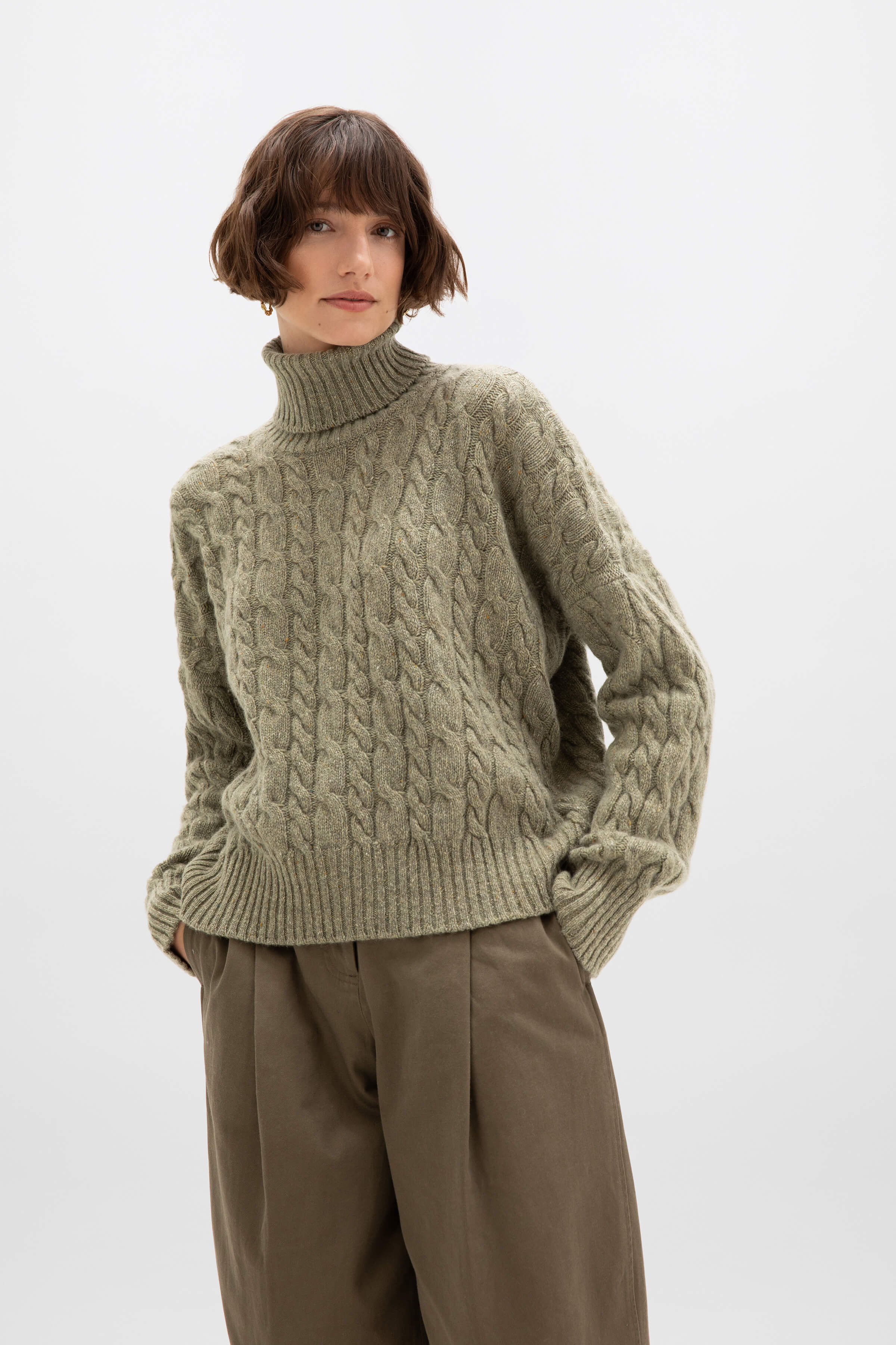 Donegal Cashmere Green Cable Roll Neck Jumper
