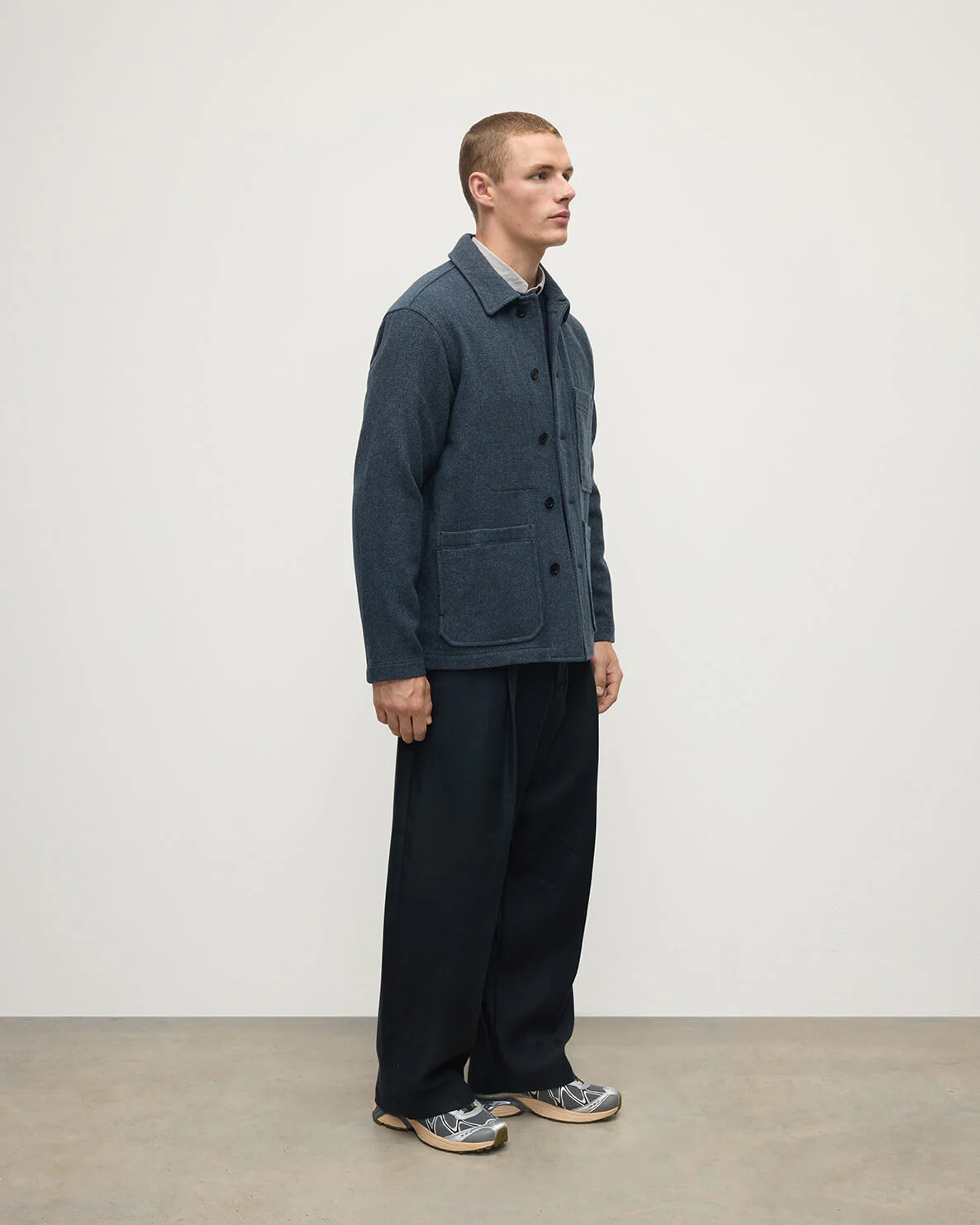 The main outer pockets have double entry, side entry and top entry leading into separate compartments, lined with hardwearing cotton cloth and reinforced with substantial bar tacks. The breast pocket is split for convenience while two internal pockets can house more personal belongings. The Weavers Jacket has dropped shoulders for a soft, relaxed fit, and a silhouette that finishes at the hip.