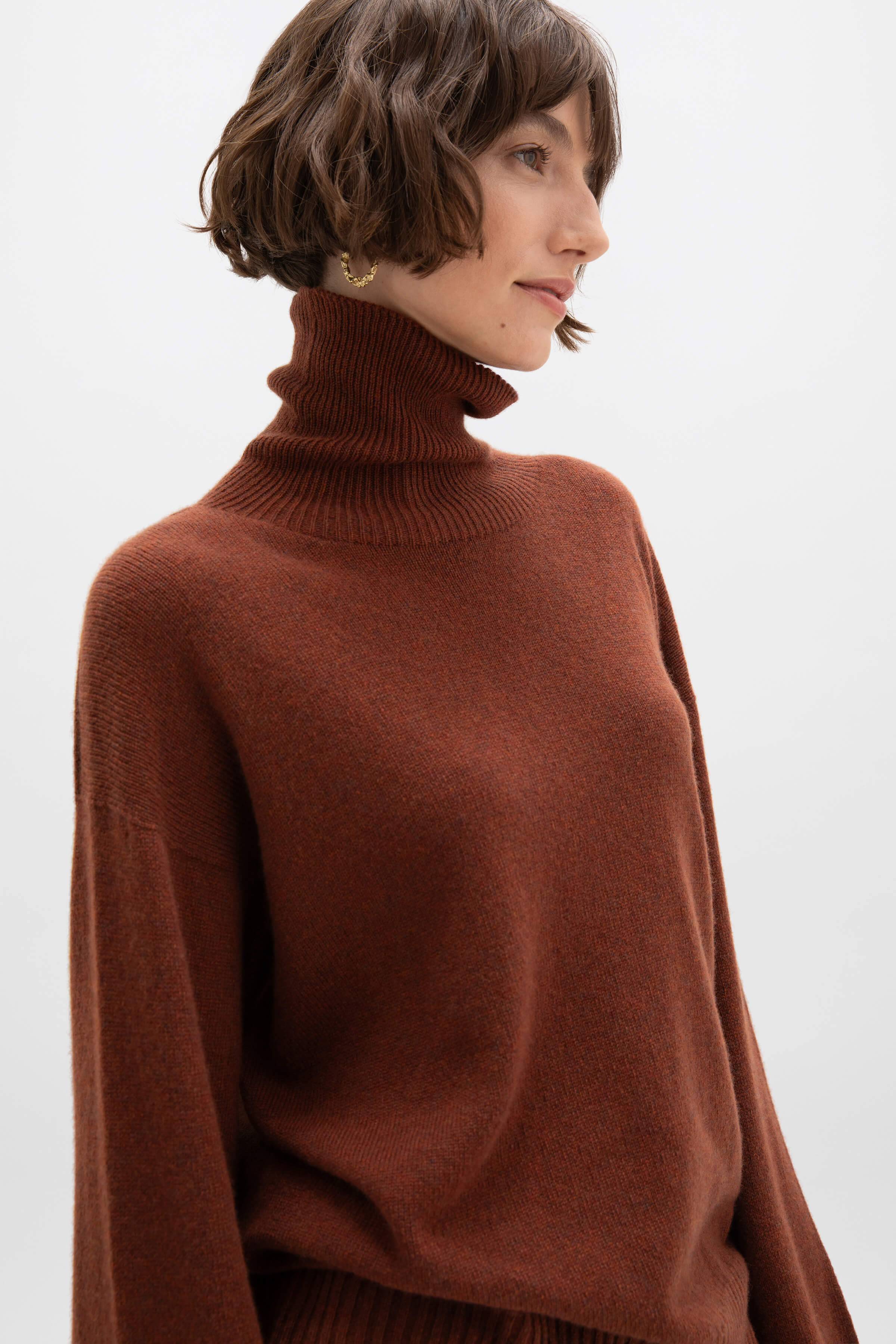 This relaxed roll neck design is a wardrobe must have, carrying you from season to season with ease. Lightweight, gauzy cashmere offers incredible next-to-skin softness. Dropped shoulders add to the laid back aesthetic, cinched at the skirt and cuffs with a little stretch. Nature-inspired shades reflect our seasonal theme ‘Soft in the Wild’.