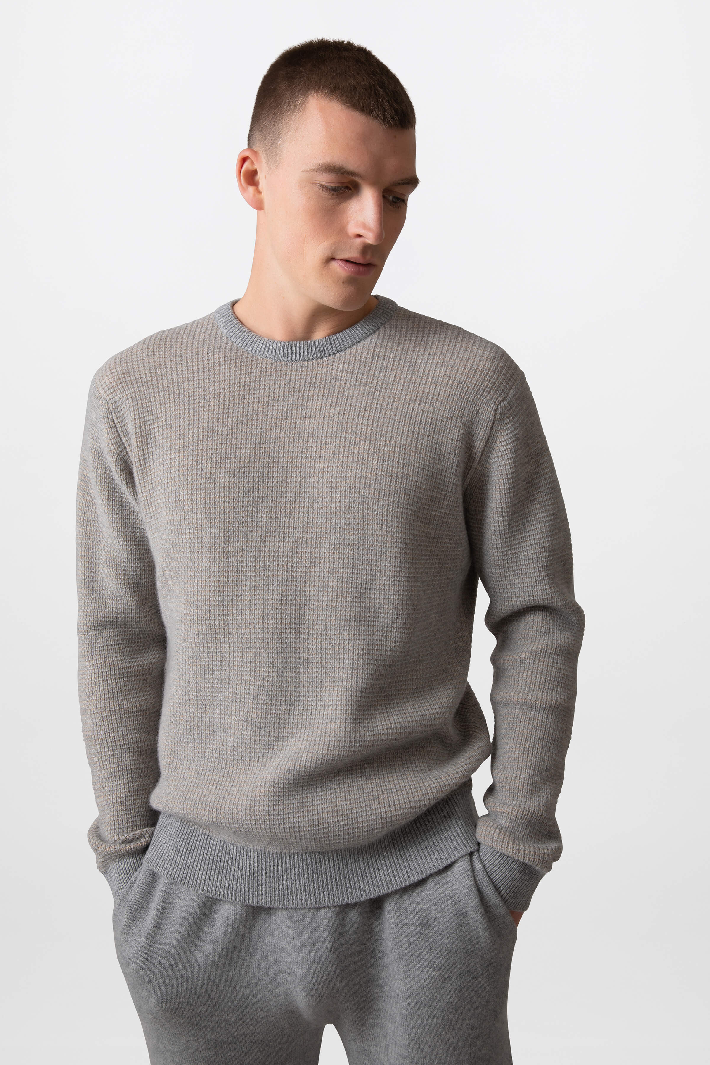 Knitted in our Elgin mill, this crew neck sweater is defined by its waffle rib texture - a surface that comes from the structure of the knit itself. In a fine cashmere that softens with wear, it moves easily between seasons and occasions.